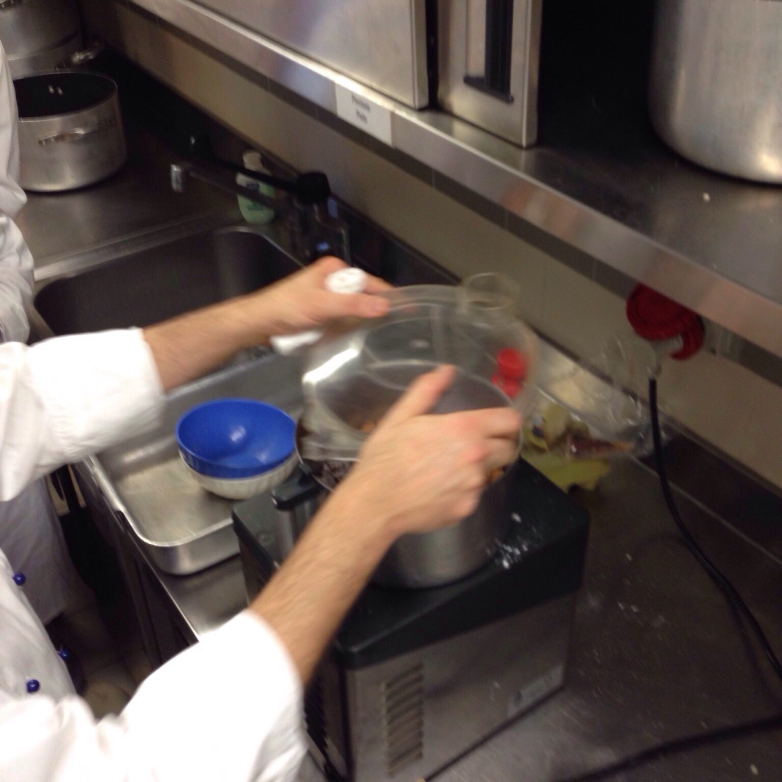 Today was a full day working with seven basic recipes that any chef could use in their restaurant for desserts. What I appreciated most about the day, was Maestro Mauricio’s laser like focus on making interesting and delicious desserts at a reasonable cost. And then he demonstrated the magic of the Pasticcere by transforming delicious desserts into works of art. Here is one example that was basically a sheet cake. Enjoy the cooking process and let me assure you…it was delicious. |