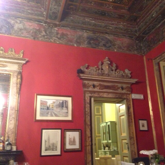 A stunning high ceiling’d salon with amazing detail in the ceiling